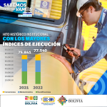 Finalmente, Parrado destacó que la ejecución total de servicios que incluye la Conversión de Vehículos a GNV, Mantenimiento de Equipos de Conversión a GNV y Recalificación de Cilindros para GNV, realizados en las gestiones 2021 y 2022 constituyen un hito histórico a nivel institucional, con los mayores índices de ejecución de: 75.854 y 77.540 servicios respectivamente.